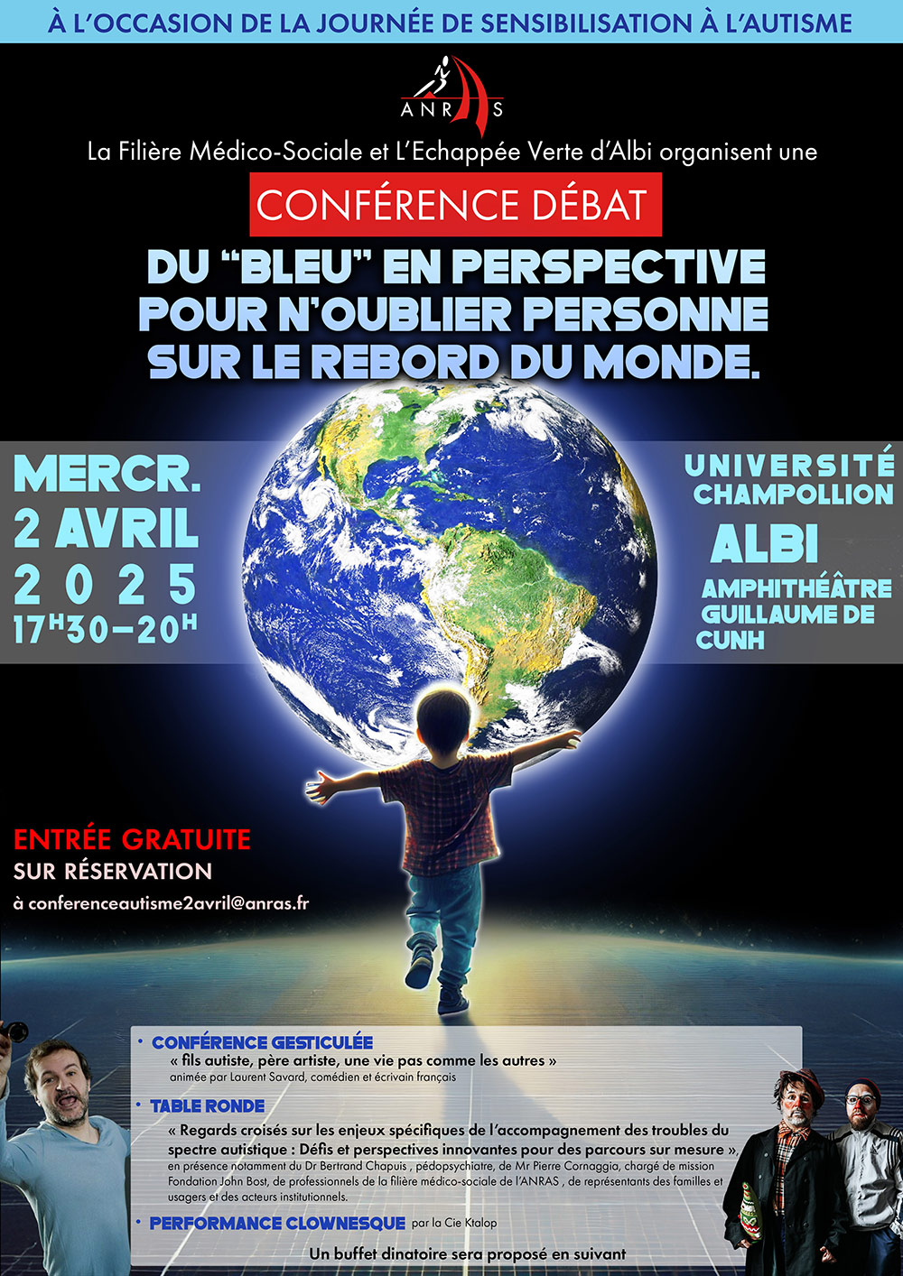 Entrée gratuite sur réservation : conferenceautisme2avril@anras.fr.
